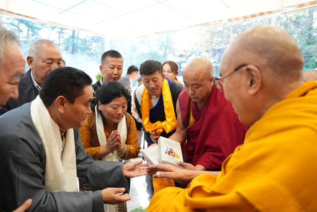 Presenting our books on the Four Commitments of His Holiness the Dalai Lama to His Holiness.